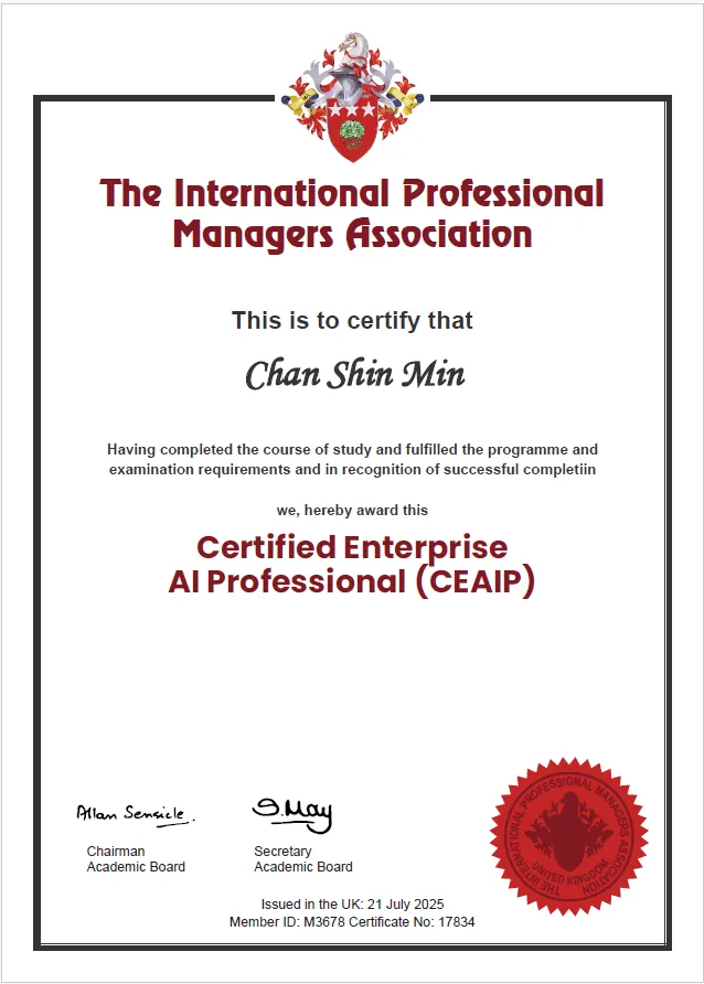 Every completer earns the Certified Enterprise AI Professional (CEAIP) credential and a verifiable IPMA Certified portfolio, Includes: